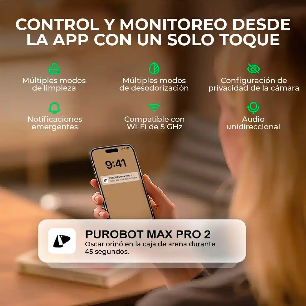 Con conectividad Wi-Fi y compatibilidad total con la app PETKIT, puedes configurar perfiles, recibir alertas, revisar estadísticas y controlar el arenero desde cualquier lugar.