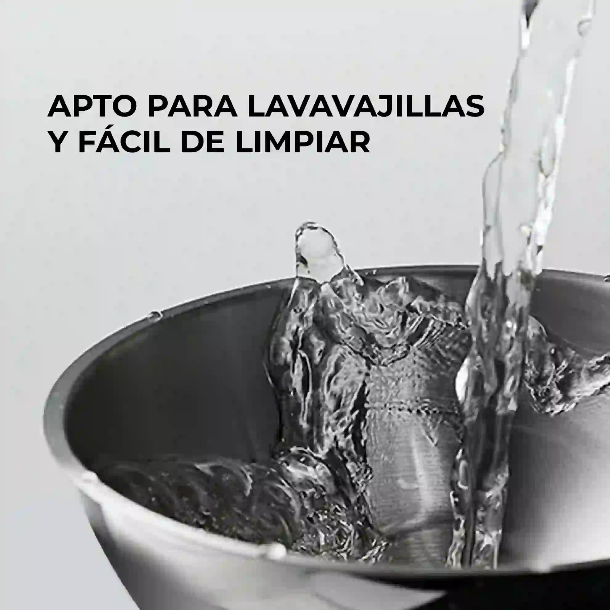 Cada bowl está fabricado en acero inoxidable 304 de grado alimenticio, resistente a la corrosión y libre de sustancias tóxicas, asegurando una superficie higiénica y duradera.
