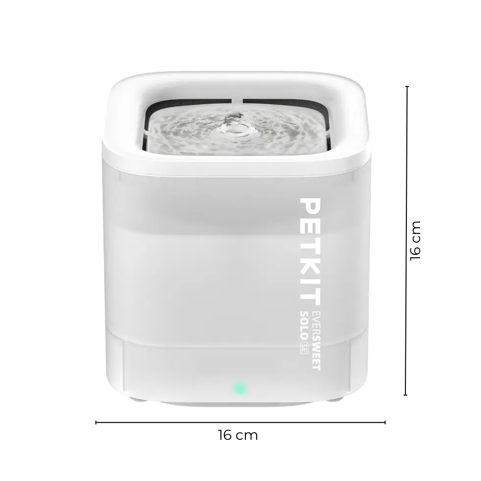 La Fuente de Agua PETKIT Eversweet SOLO es una fuente inteligente con capacidad de 1.8 L, diseñada para mantener a tu mascota hidratada las 24 horas del día con agua fresca, limpia y de mejor sabor. Gracias a su flujo continuo y silencioso, estimula el consumo de agua y ayuda a reducir el riesgo de problemas urinarios y renales. Está fabricada con materiales de grado alimenticio libres de BPA, incluye bomba inalámbrica segura, 1 filtro de regalo y cable USB, convirtiéndose en una solución práctica, higiénica y confiable para el uso diario.